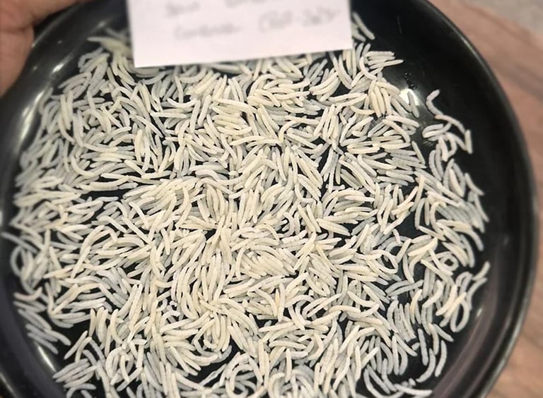 1718 Basmati Rice is a new generation rice variety known for its slender, fine grains and non-sticky texture when cooked. Ideal for high-end cooking, it retains its shape and flavor, making it a preferred choice for gourmet dishes.