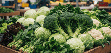 Cabbage, spinach, lettuce, broccoli, and cauliflower